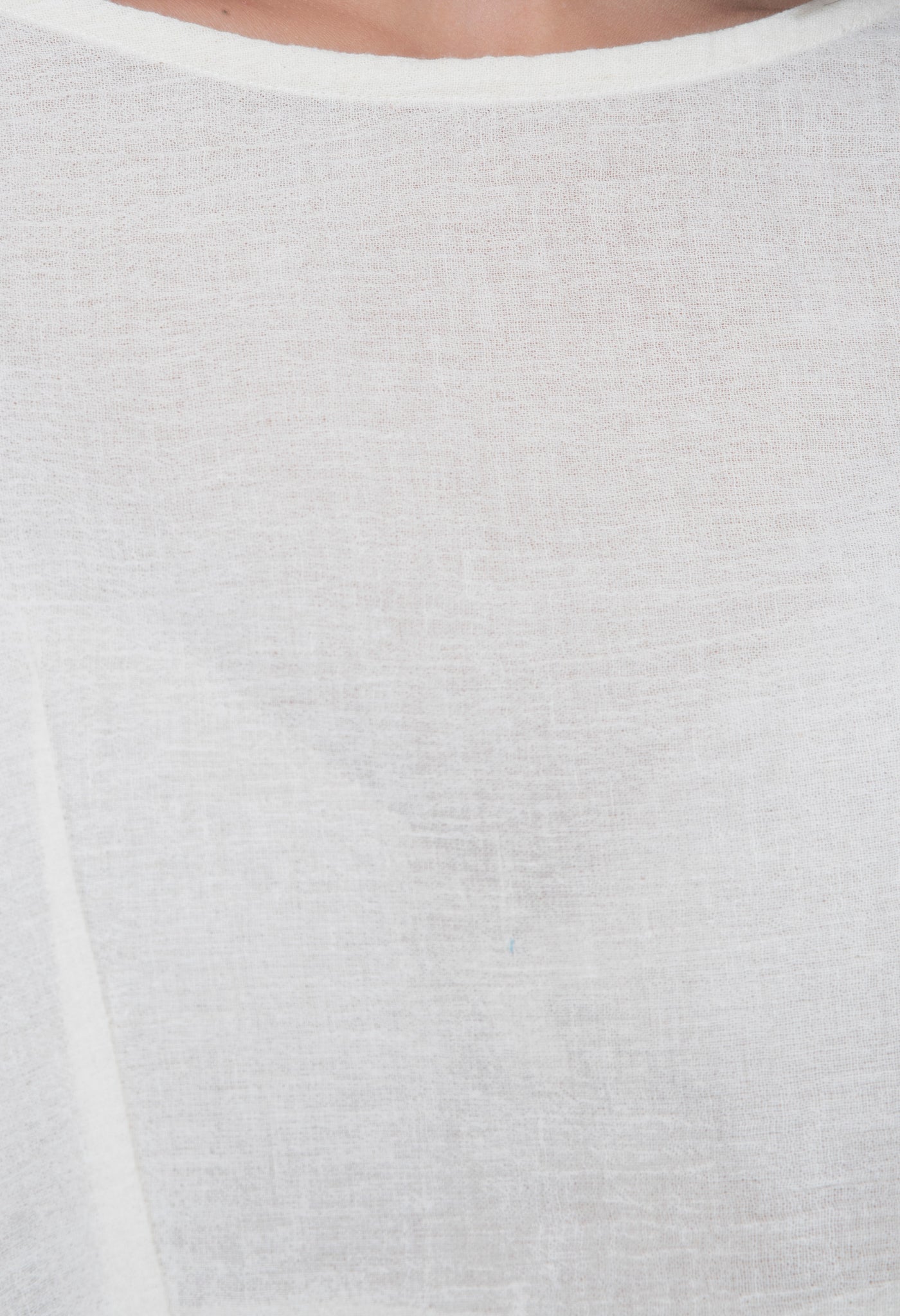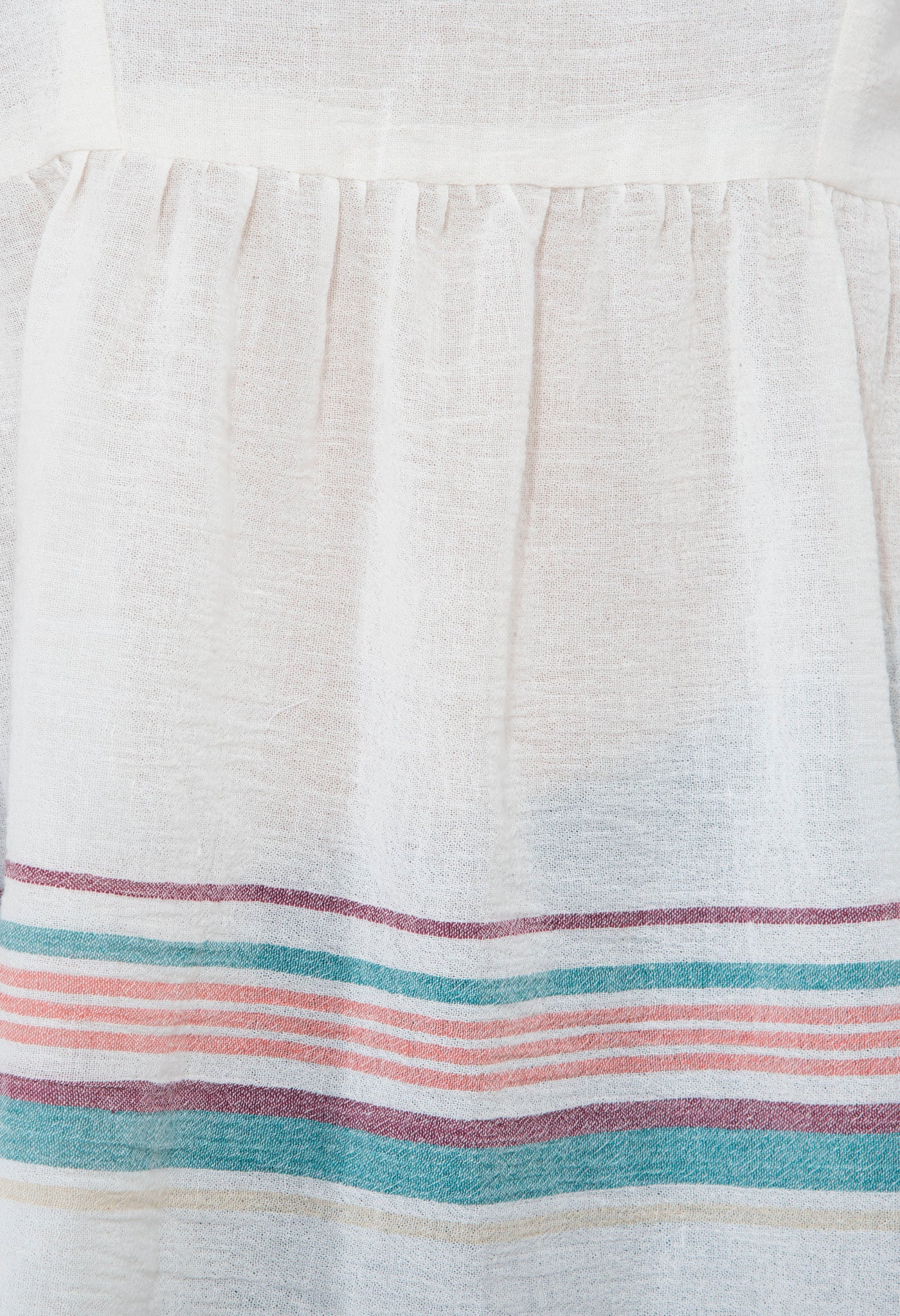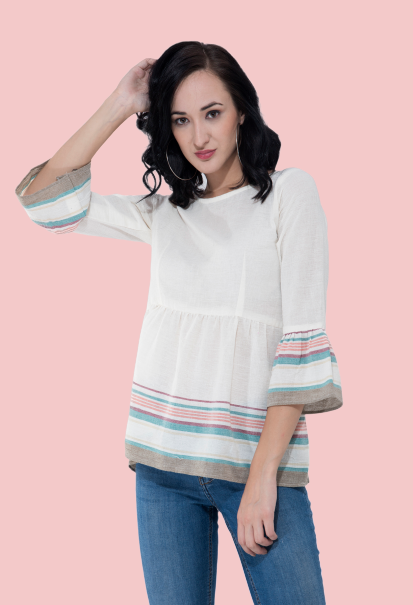 A boat neck three-striped white cotton peplum top for a perfect summer look.