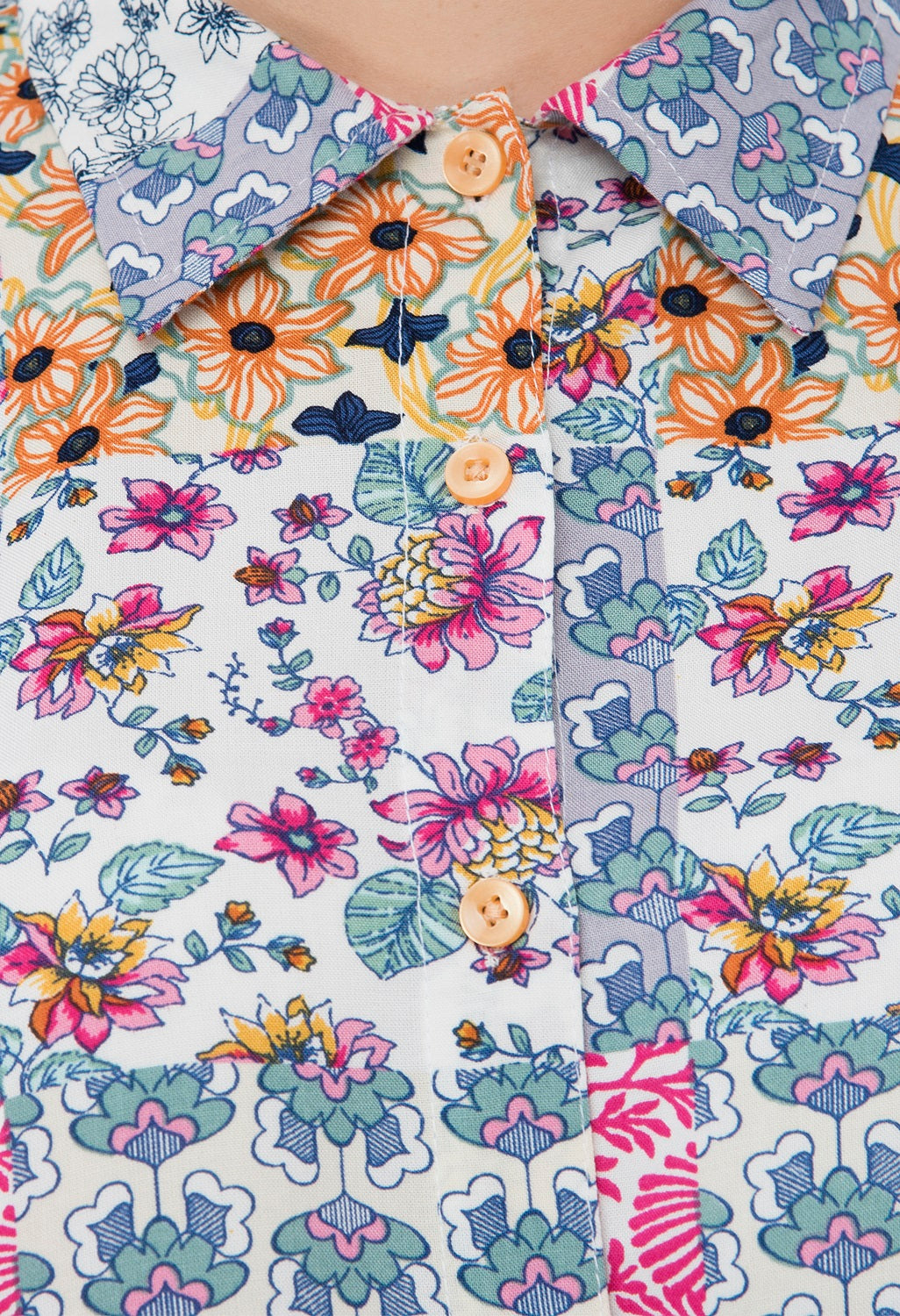 A half sleeve floral multicolor crop shirt with patchwork style print for the bohemian soul.